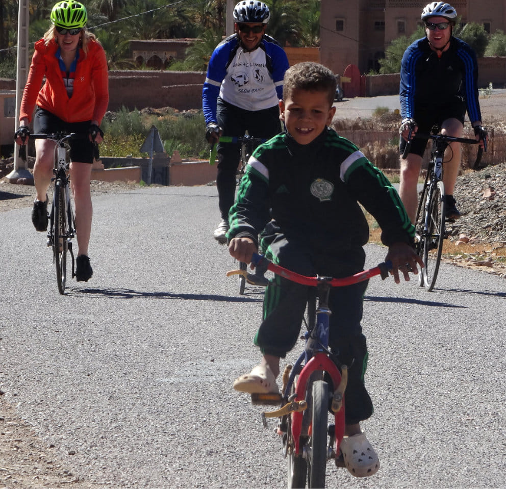 A Moroccan cycling, english speaking, guide who will meet you at your hotel and stay with you the whole day. Before the cycling stage, he will give you a briefing about safety and the use of your bike. All along the day, he will give you explanations about the traversed area and the way of life of the local population. He can also assit you in case of injury or mechanic issues on your bike.