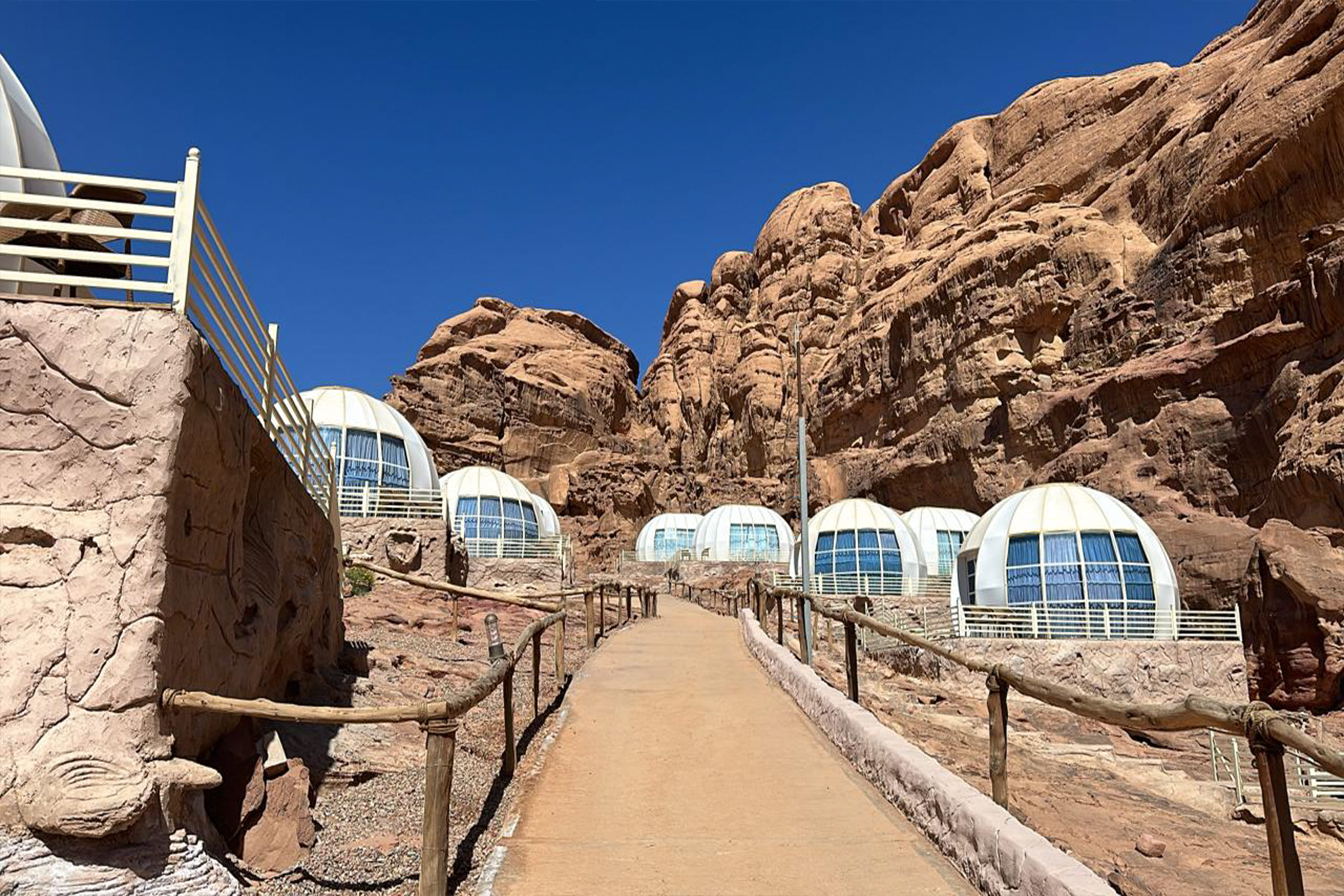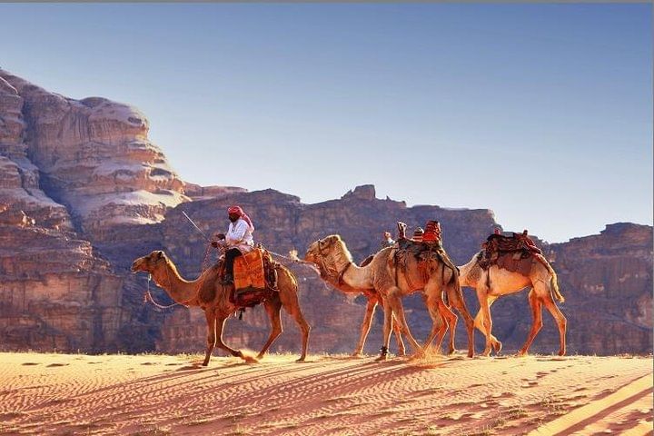 The visit of Wadi Rum is an extraordinary experience. Wadi Rum, south of Amman, where the movie The Martian was filmed is a uniquely shaped massive mountain that rose amongst the rosy red sand of the desert with towering cliffs like walking on the moon.
