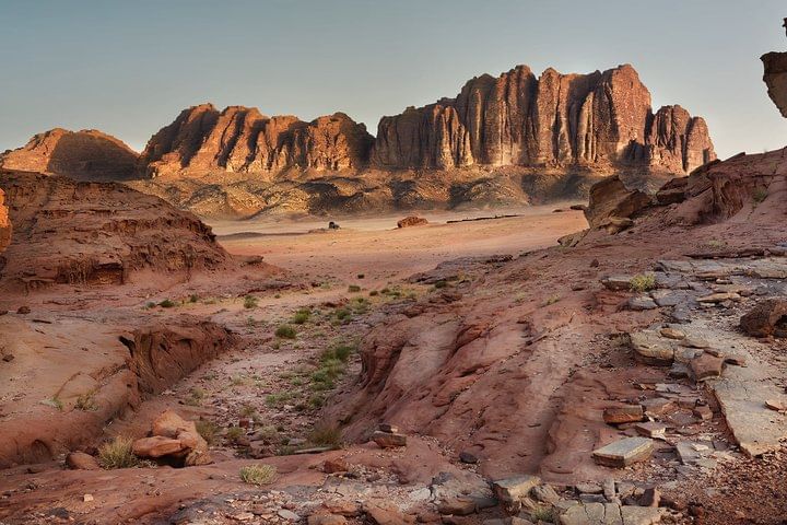 Meet your driver at your Aqaba hotel, and relax as you travel to Wadi Rum by private, air-conditioned vehicle. This vast chunk of desert mountains, valleys, cliffs, and rocks is known for its ever-changing pink-and-red colors, Bedouin settlements, and con